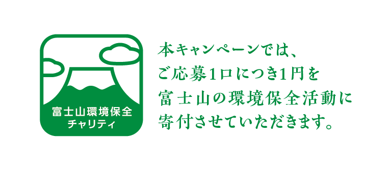 本キャンペーンではご応募1口につき1円を富士山の環境保全活動に寄付させていただきます。
