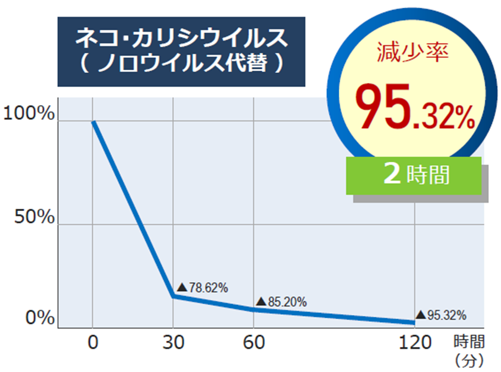 当社のCHEFER製品は、アルコール消毒では効果を得られないノロウイルスを95%以上不活化します。食品を扱う飲食店舗様、お弁当や中食の食品加工業様、生鮮食品を販売する店舗様など、ノロウイルス対策を必要とされる事業者様のウイルス蔓延リスクを大幅に低減します。