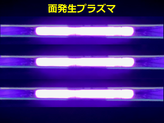 株式会社カーボントレードが持つコールド(大気圧低温)プラズマ技術は、50W程度以下の低電力でプラズマを発生させることができ、また、従来「針の先」レベルでしか発生させることができなかったプラズマを、「面」でかつ「自由な形状」で発生させることができます。