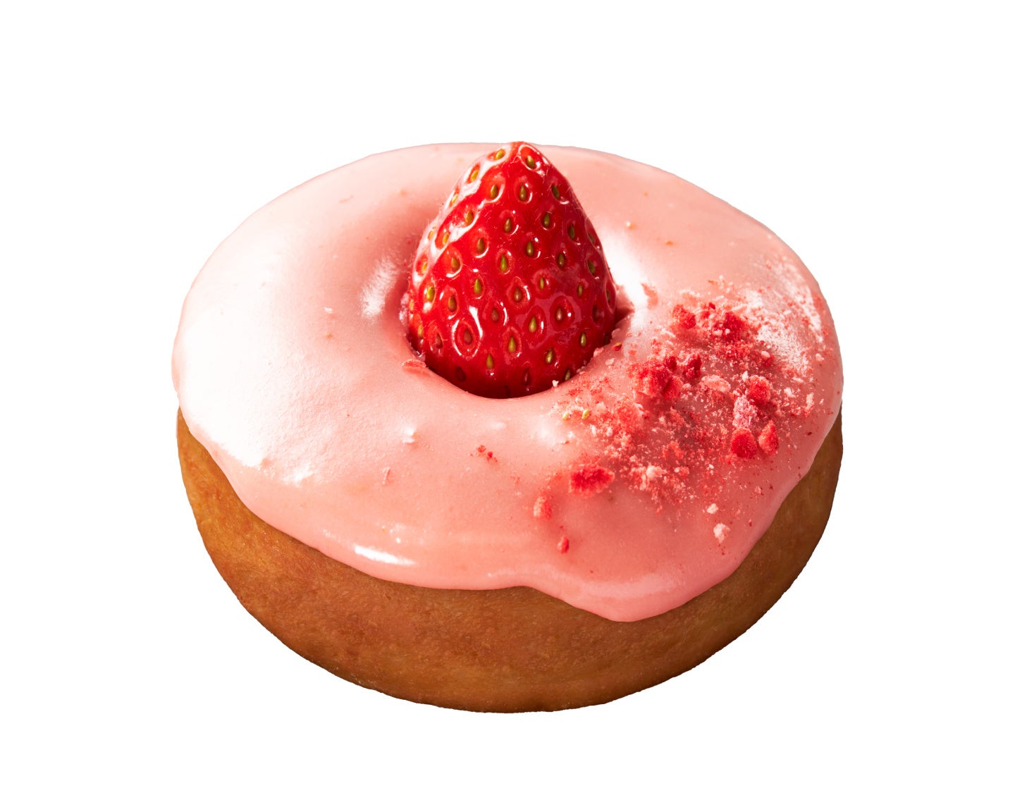 ストロベリーの甘みとローズのフローラルな香りが口の中で広がる、上品な味わいの春季限定ドーナツ。自家製ストロベリーソースを使用したグレーズに、華やかなローズフレーバーを加えました。フレッシュな国産いちご※を1粒まるごとトッピングし、ハッピーな気分になれる春らしさ満開のドーナツです。