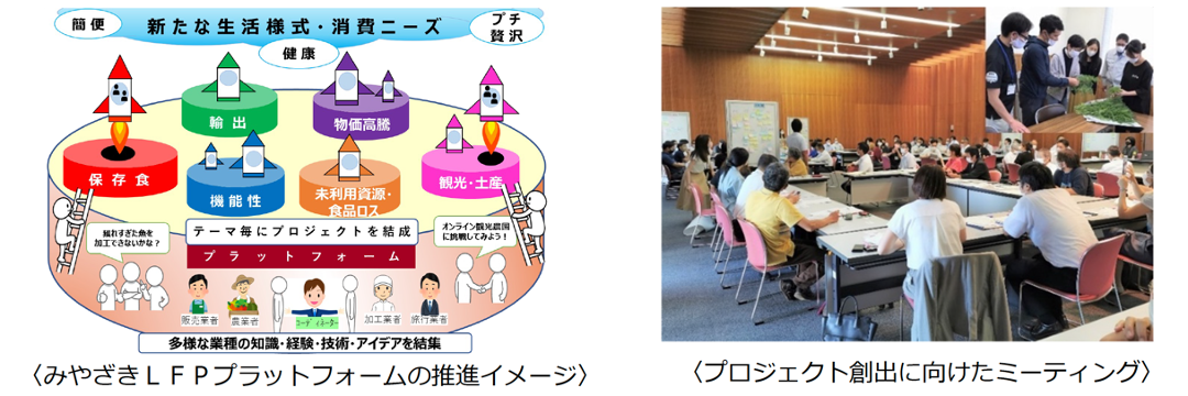 宮崎県の強みである地域食資源の高付加価値化に向けた取組を強化するため、新たな生活様式や消費ニーズに対応した新商品・新サービスの開発を目指し、食と農に関する多様な関係者が参画して、各々の知識・技術・経験等を結集する“みやざきLFPプラットフォーム”を設置しました。