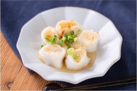 「ふわり点心」は、米粉から作られた皮で、イカをベースに作られた餡を包んで蒸し上げた点心です。皮に使用している米粉は、徳丸農園で育てたお米を使用しています。米粉を使っていることで小麦アレルギーの方にも安心して食べていただけます。