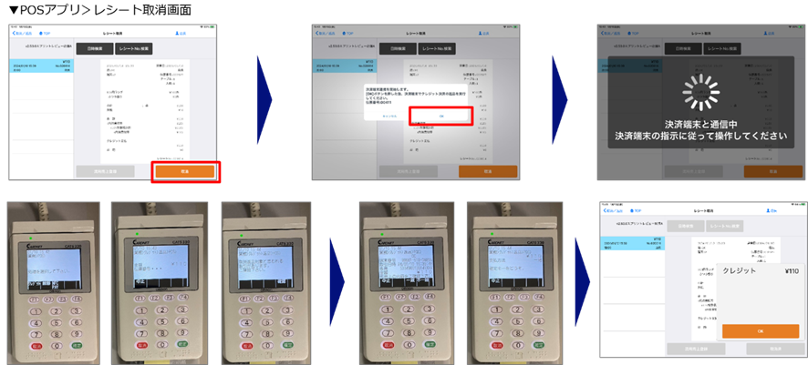6:レシート取消画面上で会計が完了し、取消レシートが印字される