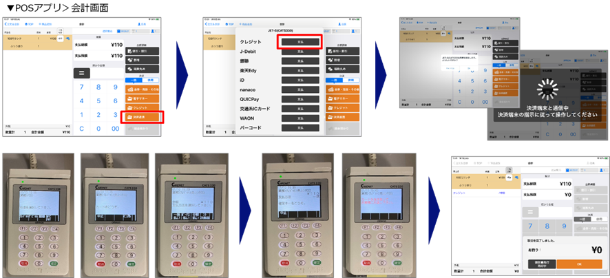 4:支払種別と会計金額が自動で連携され、決済端末で確認し入力を進める