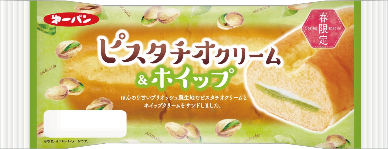 菓子パンには、桃の花の色合いをイメージした白桃や、淡いグリーンカラーが春らしいピスタチオのクリームを使用。ふんわりとしたパン生地と組み合わせ、食べごこち軽やかな商品に仕上げました。