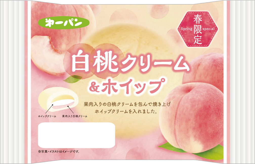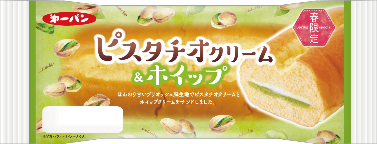 菓子パンには、桃の花の色合いをイメージした白桃や、淡いグリーンカラーが春らしいピスタチオのクリームを使用。ふんわりとしたパン生地と組み合わせ、食べごこち軽やかな商品に仕上げました。