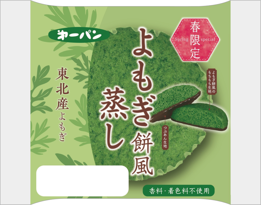 東北地方で採れたよもぎを練り込んだ、よもぎの香りともちもち食感を楽しめる蒸しぱんです。