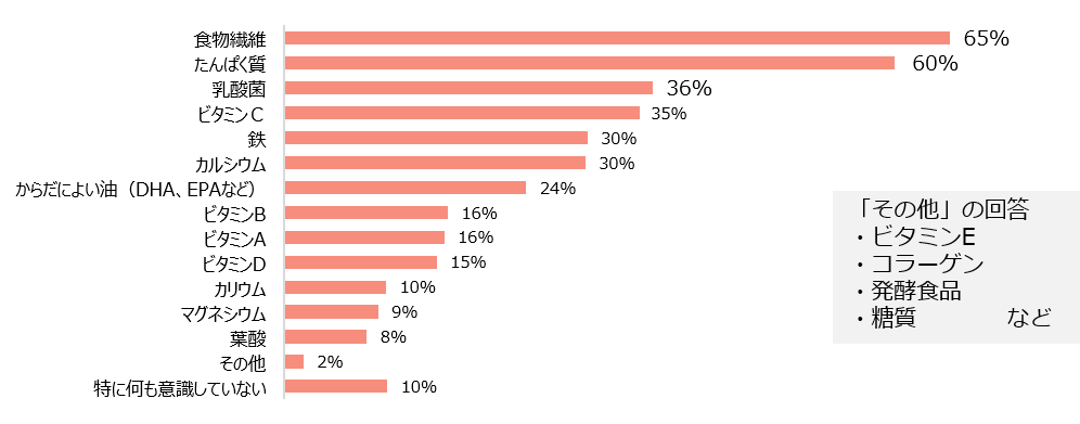 Q2.普段の食事で意識して摂るようにしている栄養素・成分などはありますか?(複数回答可)