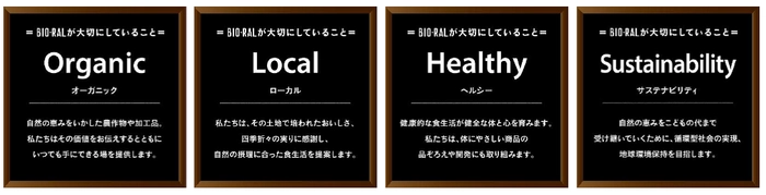 ドイツ語「BIOLOGISCH(有機の)」と英語「NATURAL(自然)」からなる造語。“素敵なナチュラルライフスタイルを通じて、心も体も健康で美しく豊かな毎日を過ごしてもらいたい”と願うスーパーマーケット。「オーガニック・ローカル・ヘルシー・サステナビリティ」をコンセプトに、ナチュラルライフスタイルをご提案し、お客様の心と体の健康と豊かな日々をお手伝いできるよう魅力ある商品を提供しています。