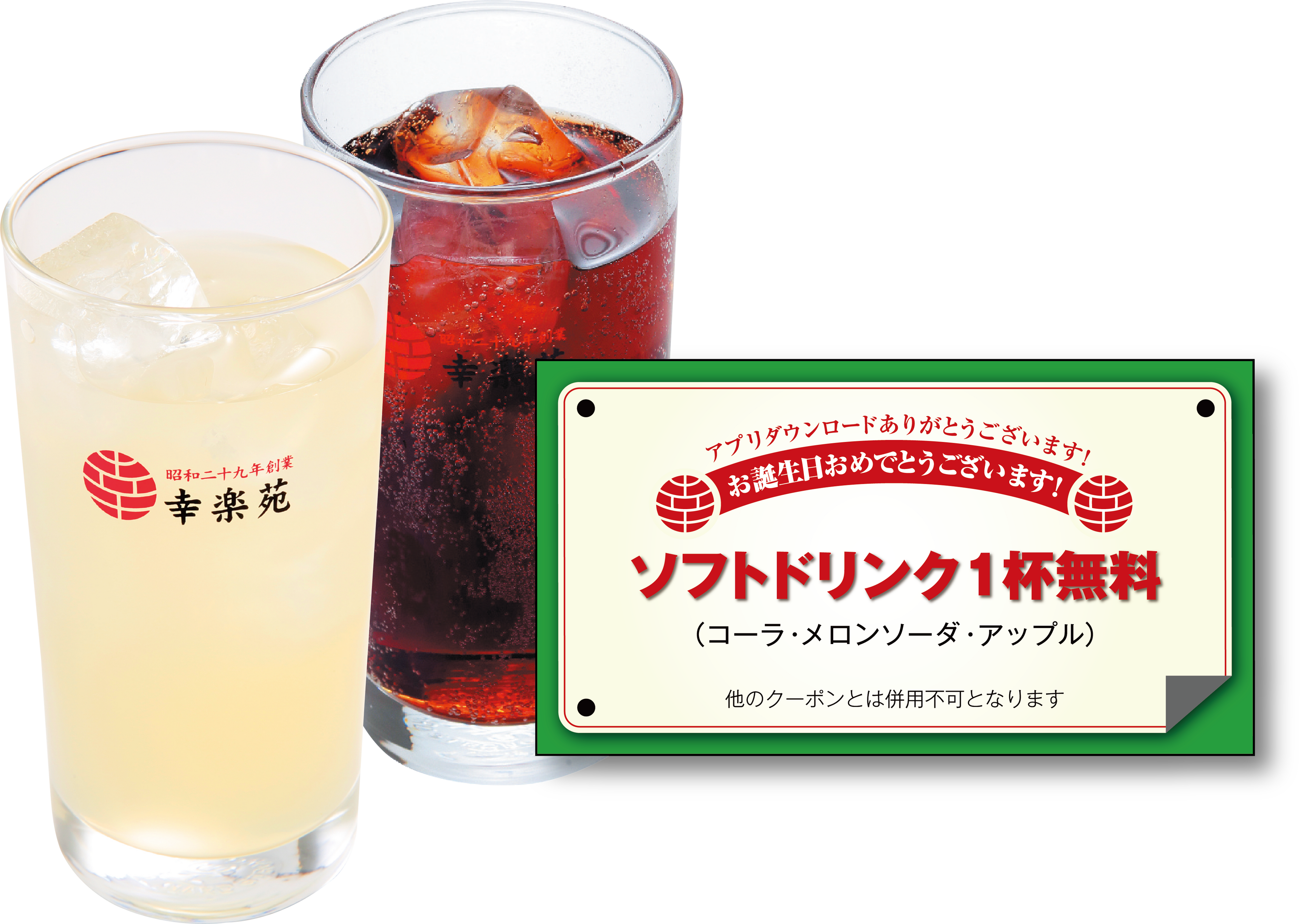 ソフトドリンク(コーラ・メロンソーダ・アップル)1杯無料 (麺類ご注文のお客様に限ります) |