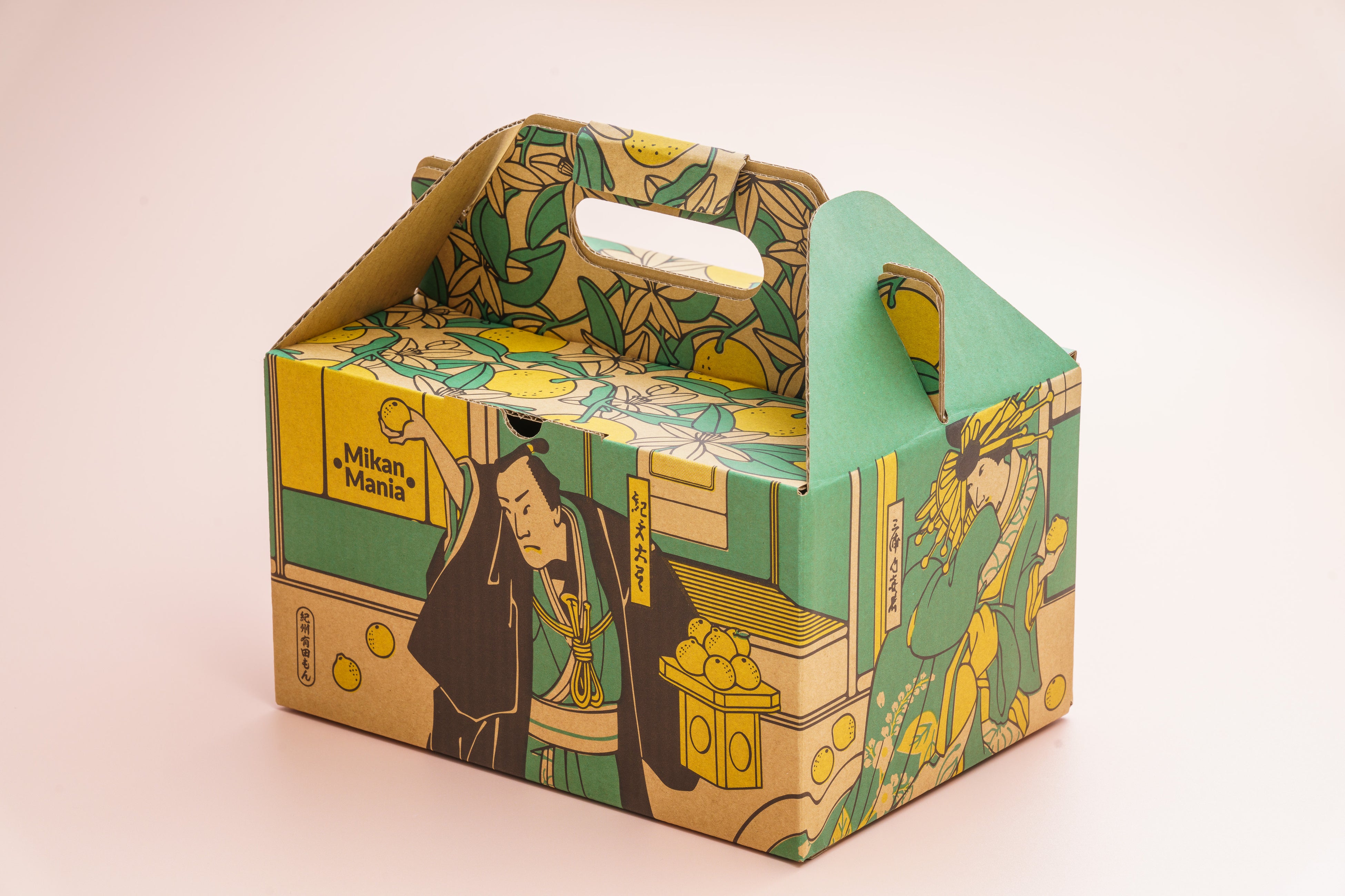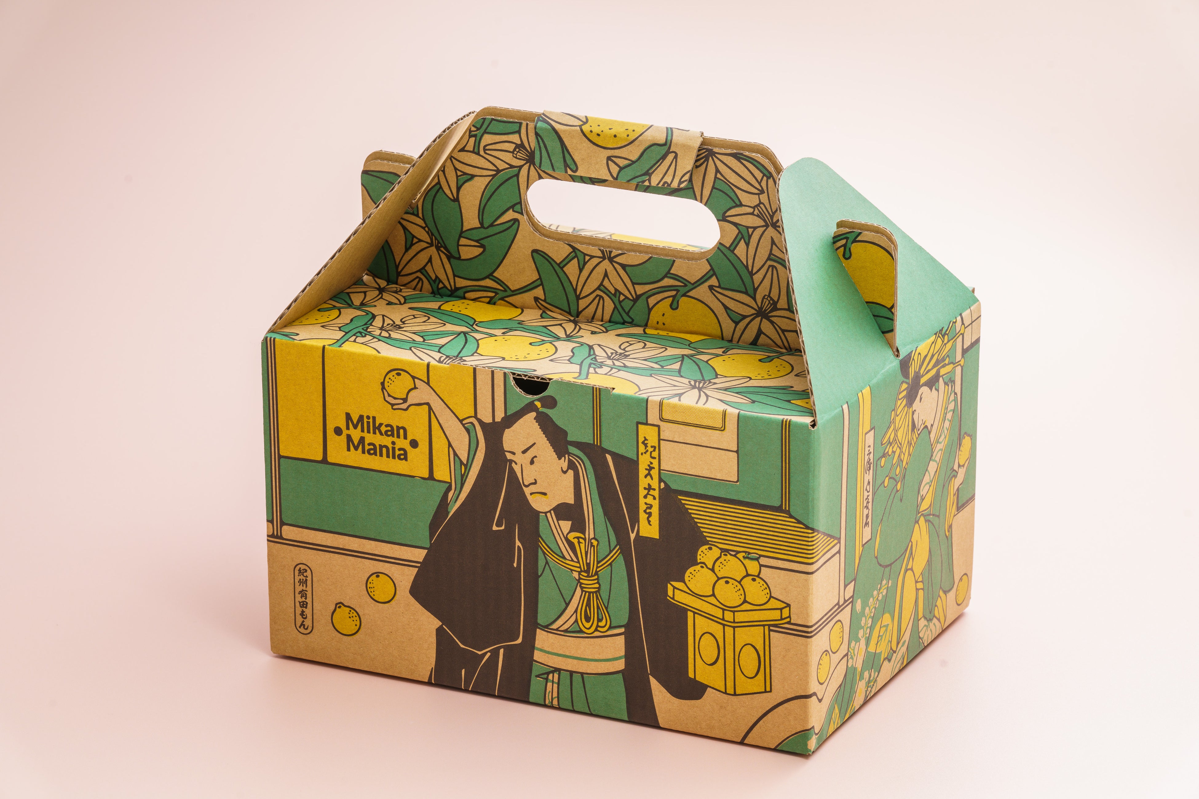 江戸時代に和歌山県有田のみかんを船で江戸や全国に運んで売って巨万の富を築いた紀伊國屋文左衛門。冬にこたつでみかんを食べる日本独特の食文化、風習もこの頃に生まれました。一方、直近の温州みかんの国内消費量は最盛期の1/5と年々減少しています。 「みかんを食べる食文化、風習を次世代に継承したい」「2025年の大阪万博をきっかけに、 和歌山県有田の柑橘の美味しさを世界中に伝えたい」そんな想いで彼の浮世絵をモチーフにパッケージデザインを制作いたしました。