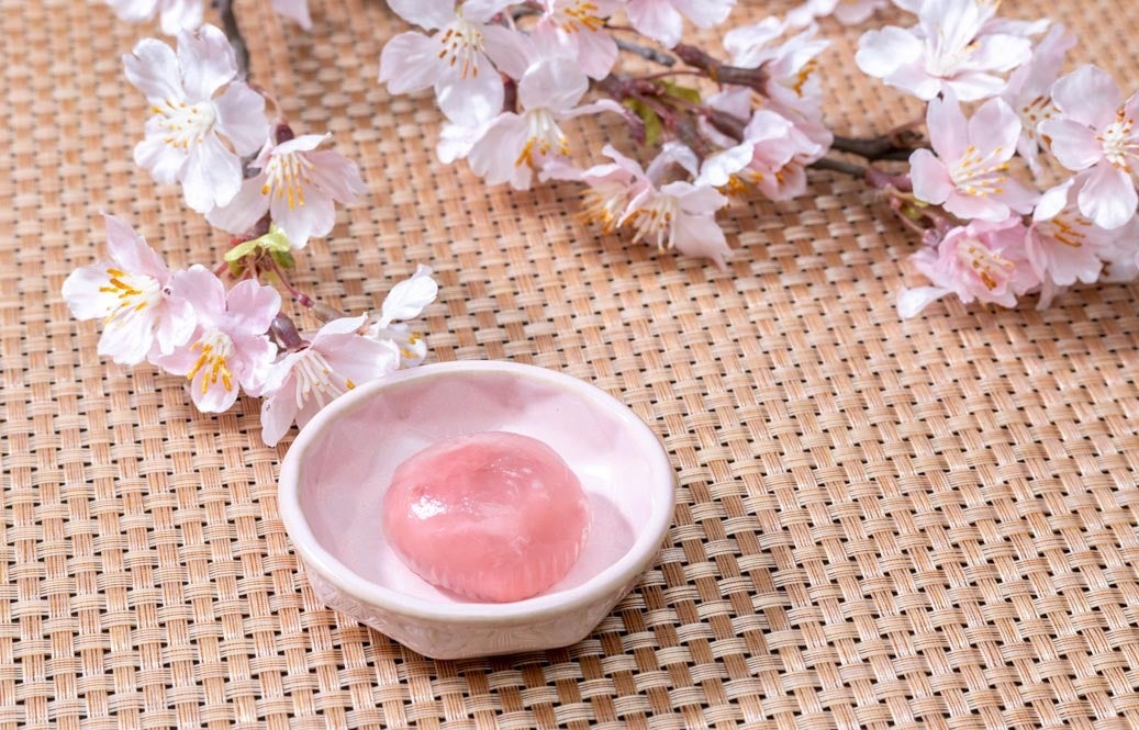 甘味はお花見気分を盛り上げる、桜色をイメージした、いちご風味の葛餅をおつけしました。
