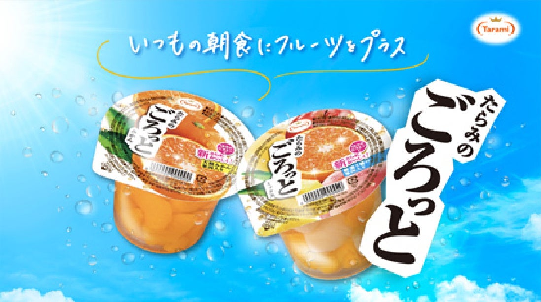 「たらみのごろっと」は、みずみずしい果実をたっぷり詰め込んだ大容量フルーツゼリーです。誕生から11年、フルーツの美味しさを追求してきました。累計出荷個数1億2000万個突破。