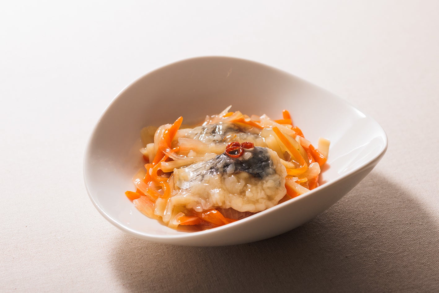 にんじんと一緒に酸味のあるさっぱりとした甘酢に漬け込みました。