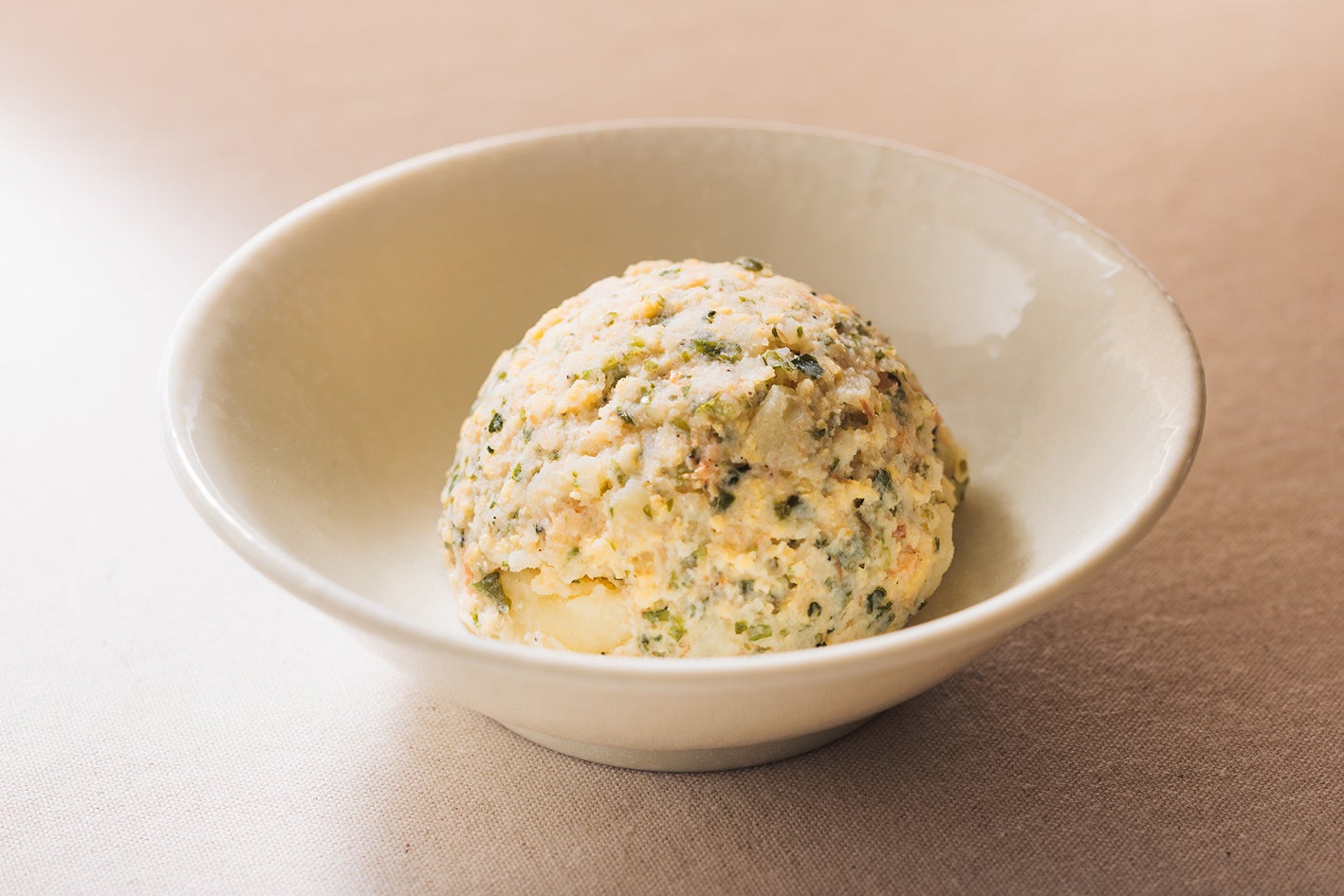 粗めにつぶしたじゃが芋とあおさの風味、小海老の食感が絶妙です。