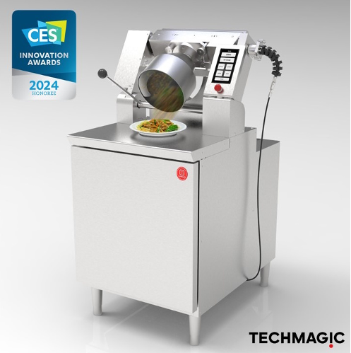 TECHMAGICが開発した調理ロボット I-Robo は、調味、攪拌、加熱、調理後のフライパンの洗浄といった一連の動作を自動化することができるロボットで、炒飯・野菜炒めなど、熟練の職人のレシピを自動で再現します。自動調理においては、メニューに応じて、加熱温度、加熱時間、鍋の回転スピード、回転方向を柔軟且つ適切に調整できます。このように、I-Robo の導入により、人 手不足の課題に対し省人化を推進し、解決を目指します。