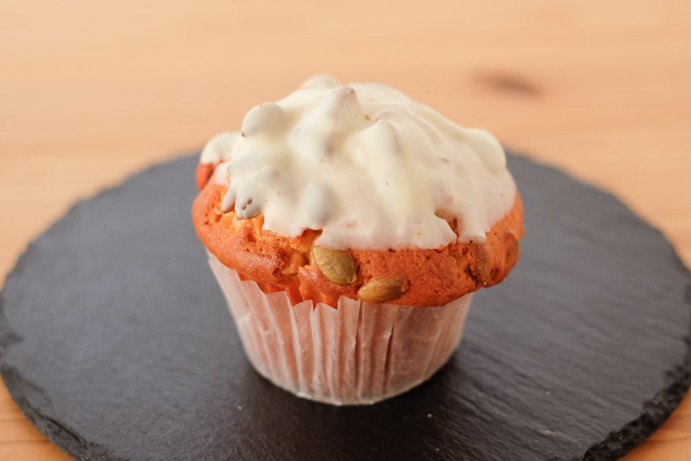 数々のテレビや雑誌で取り上げられているANDPAN。今回はホワイトチョコを使ったマフィンで参加してくれています。アーモンド、カシューナッツ、カボチャの種、ホワイトチョコチップを練り込んだマフィンに、更にホワイトチョコをコーティング。食感、風味共にたくさんの要素がマッチした、満足感のあるマフィンです。