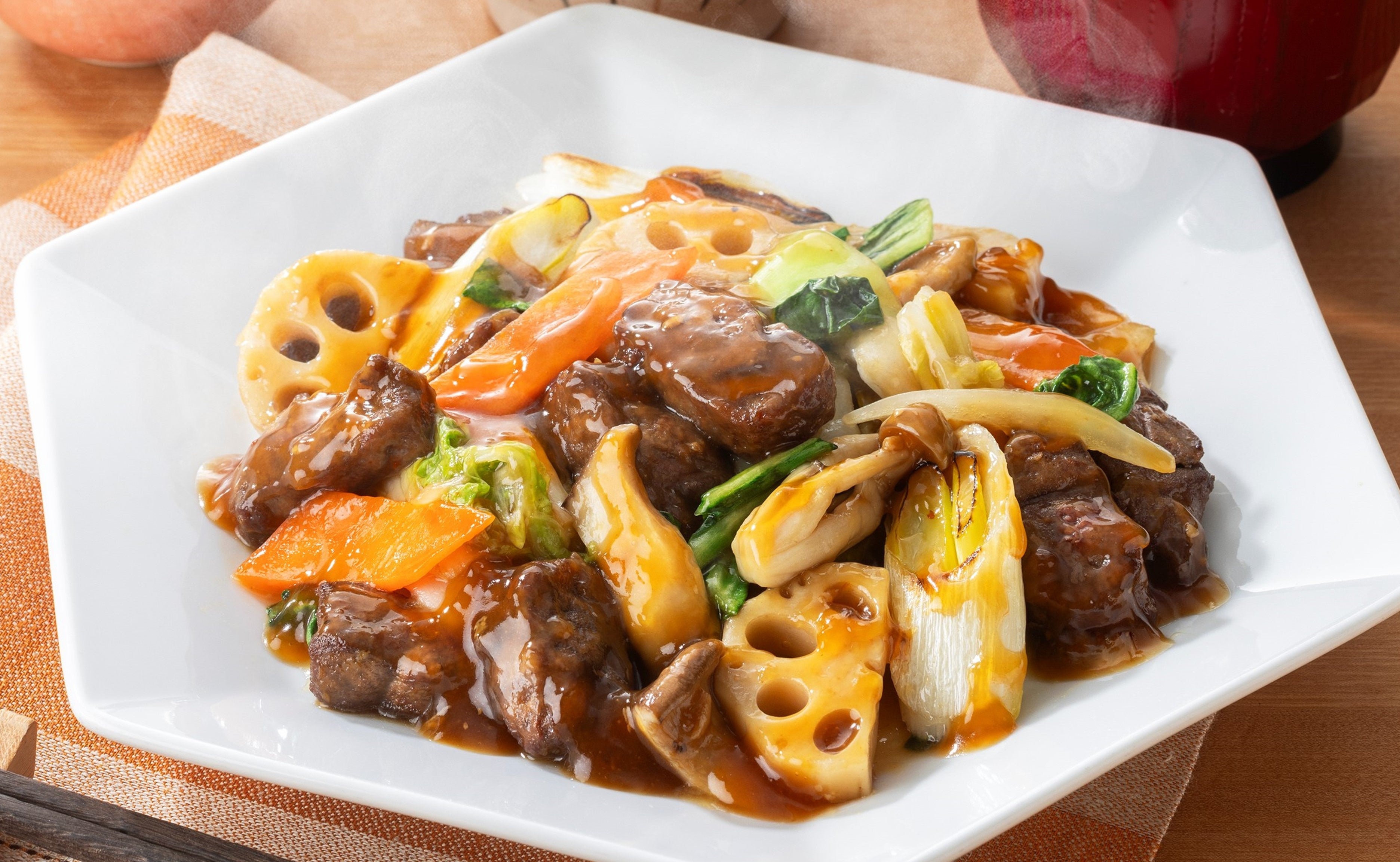 鶏レバーは、「栄養の宝庫」と呼ばれ、たんぱく質のアミノ酸バランスもよく、ビタミンAなどのビタミン、鉄や亜鉛などのミネラルを含む、健康を気遣う人にはおすすめの食材。レバーは臭みのあるイメージがありますが、醤油麹ダレのコクと、8種の野菜(白菜、長ネギ、チンゲンサイ、人参、れんこん、しめじ、エリンギ)の旨みで食べやすく深みのある味わいを楽しめます。気になる食物繊維もたっぷり摂ることができ、PFCバランス(たんぱく質、脂質、炭水化物)も健康を保つための理想的なバランスに近いメニューです。レバー特有の風味も少なく、炒める前に揚げるため食感も良い仕上がりです。