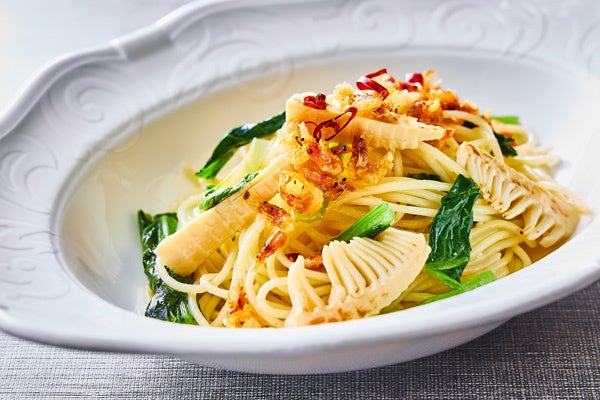 (右)桜海老と小松菜・竹の子のスパゲッティー二