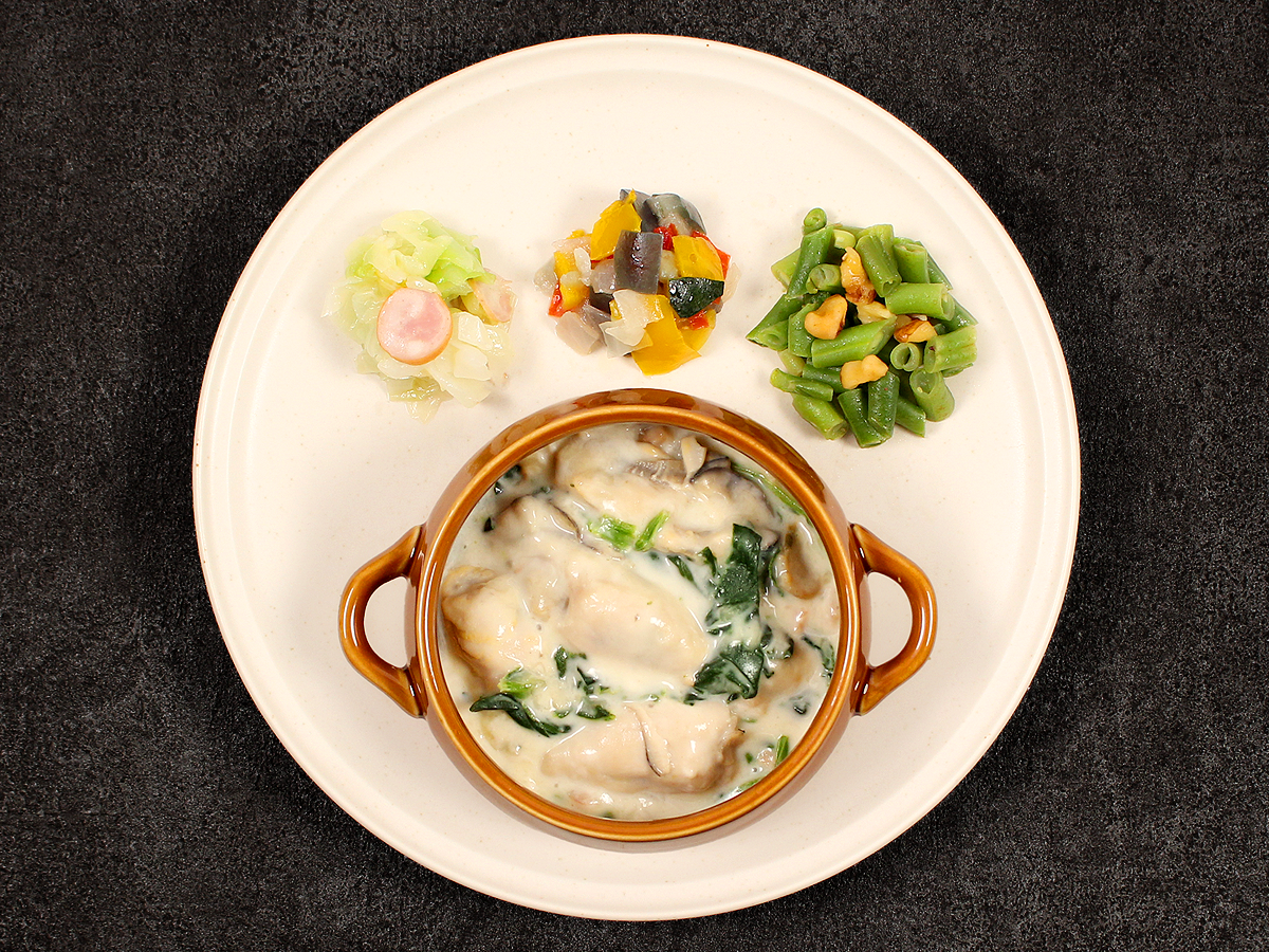 旨みたっぷりの岡山県産牡蠣を使用した贅沢なクリームスープです。頑張った日のご褒美や、寒い日のあったかメニューとして食べていただきたい一品です。