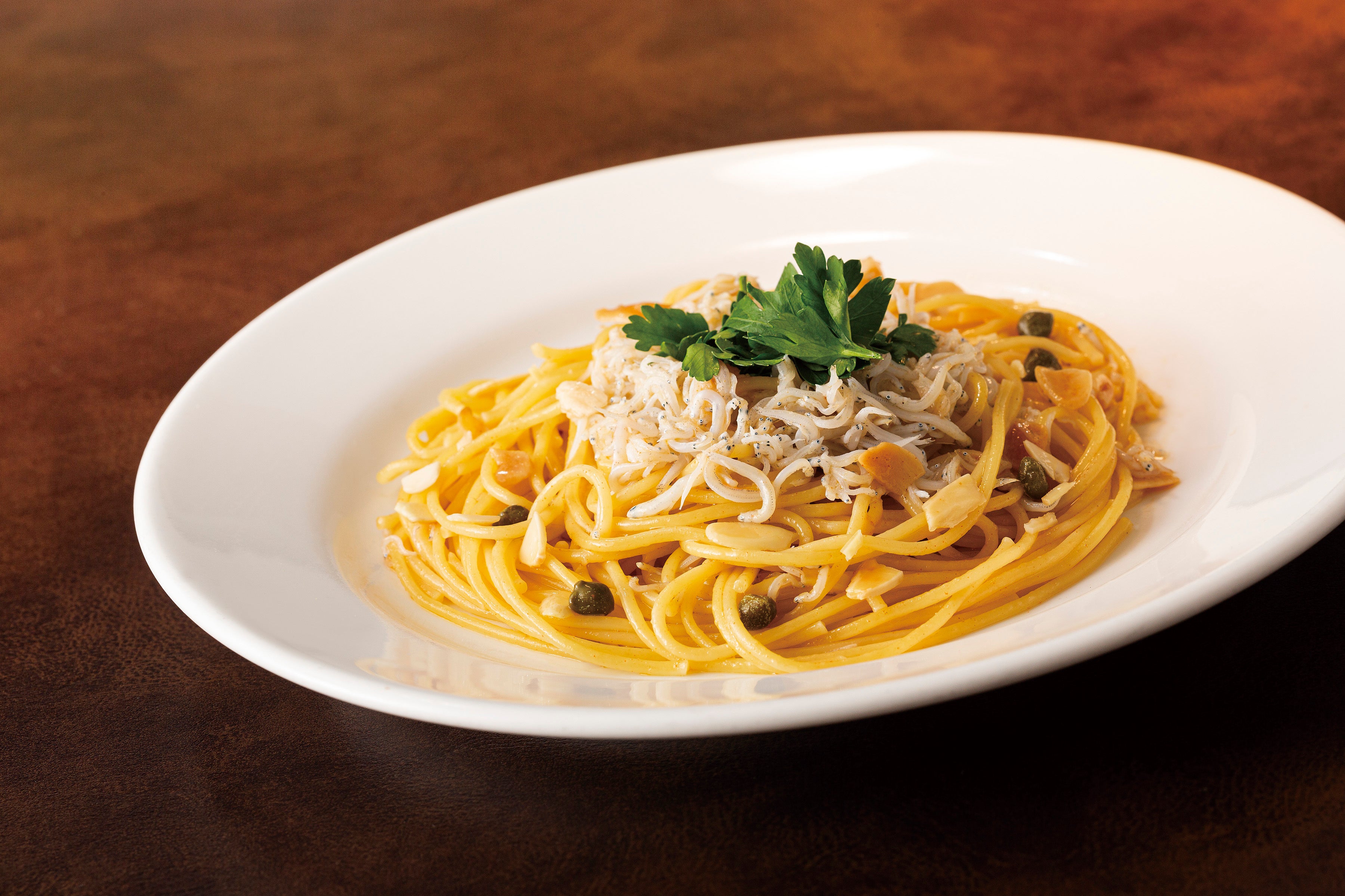 瀬戸内産のしらすをメインに、ガーリックの豊かな風味とピリッ