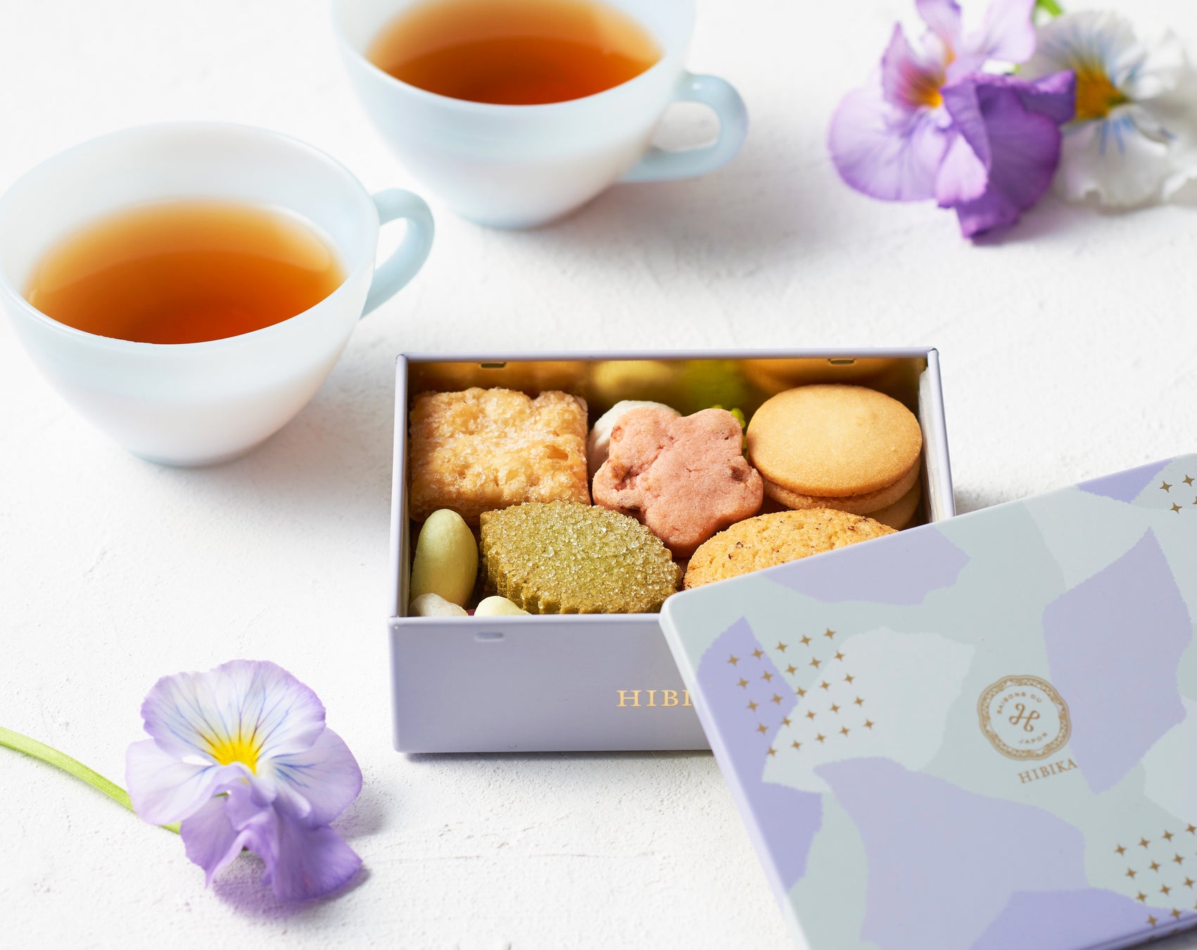 3月1日(金)からは、春らしい彩りのふやきに4 種類のクリームをサンドした、ふわりと軽い食感の「彩ふわり(いろふわり)」や、人気のクッキー(ポルボロン)やクッキー缶も、春らしい装いで登場します。四季折々のHIBIKAの四季菓子を、どうぞお楽しみください。