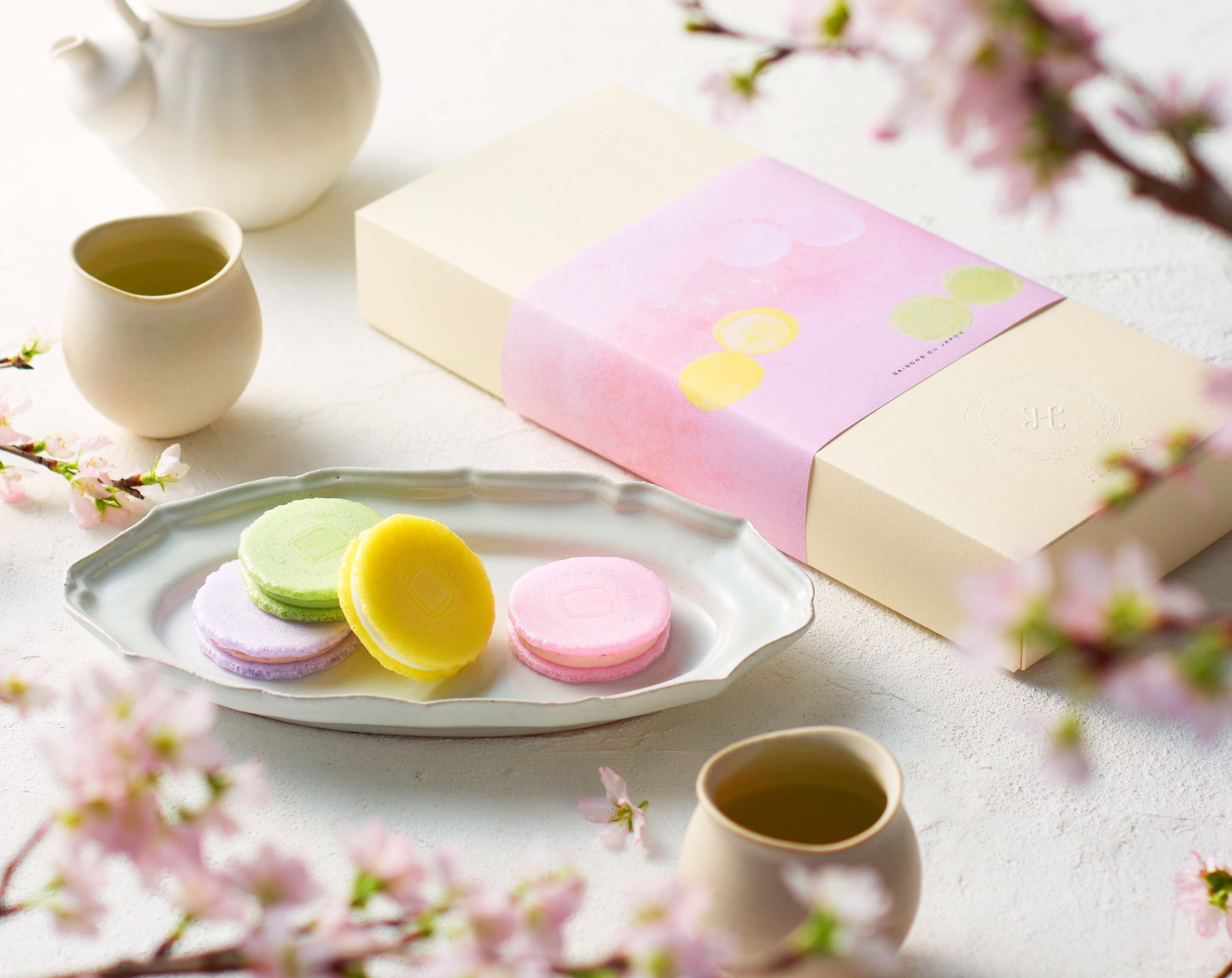 3月1日(金)からは、春らしい彩りのふやきに4 種類のクリームをサンドした、ふわりと軽い食感の「彩ふわり(いろふわり)」や、人気のクッキー(ポルボロン)やクッキー缶も、春らしい装いで登場します。四季折々のHIBIKAの四季菓子を、どうぞお楽しみください。