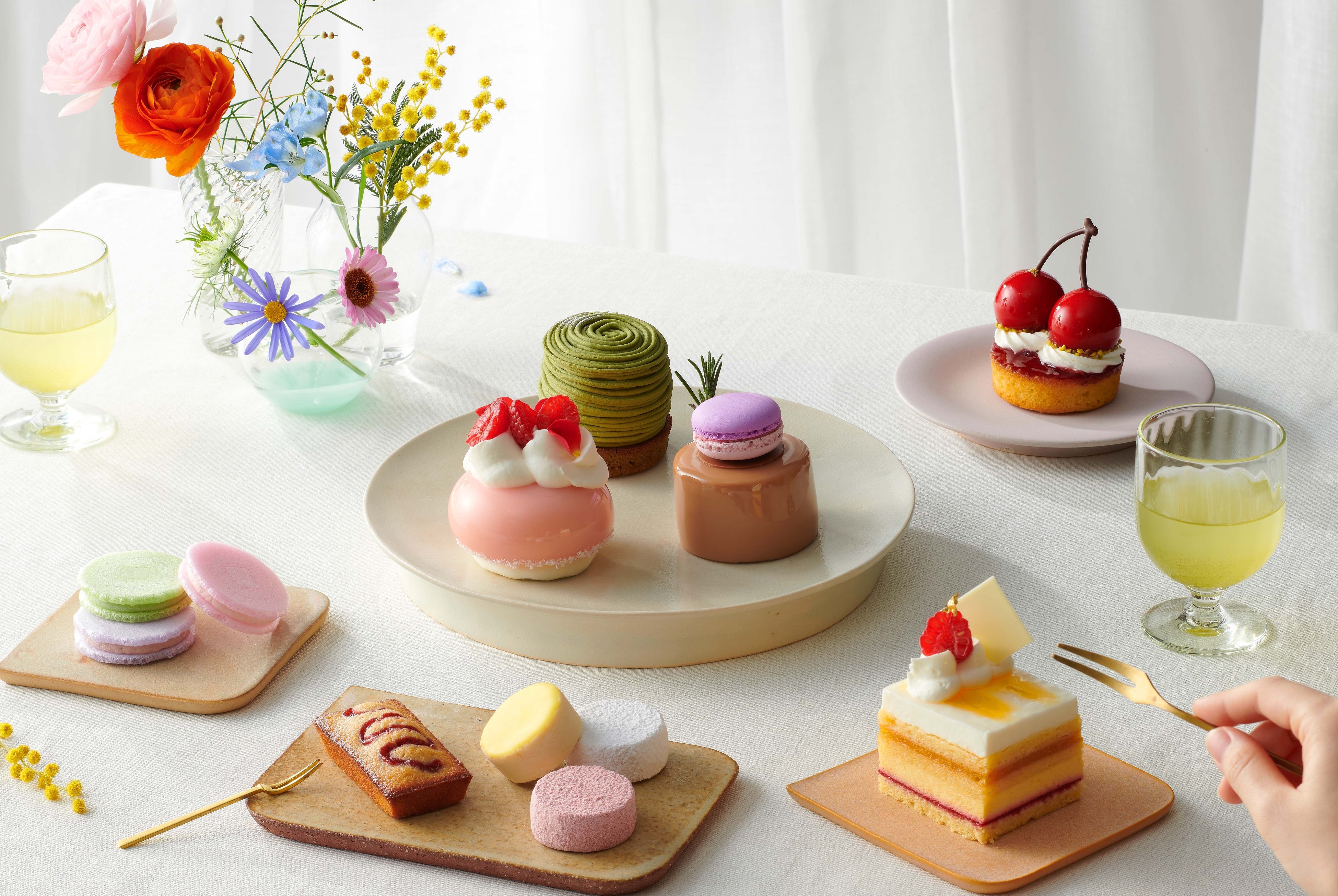 春のやわらかな風をイメージした桃のムース「春風( はるかぜ )」、可憐に咲く春の花々を表現した「すみれ」や「花の蜜」のケーキ、真っ赤に実ったつややかなムース「さくらんぼ」など、春の訪れを感じる色とりどりのケーキをご用意いたします。 春の味わいをどうぞお楽しみくださいませ。