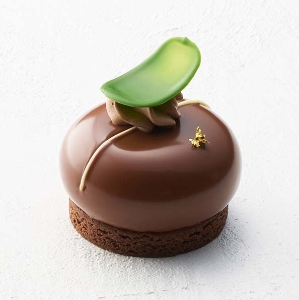 宇治抹茶のムースで瀬戸内レモンのジュレ、宇治抹茶のガナッシュを包みました。抹茶の上品な香りと渋みに爽やかなレモンの酸味が広がります。