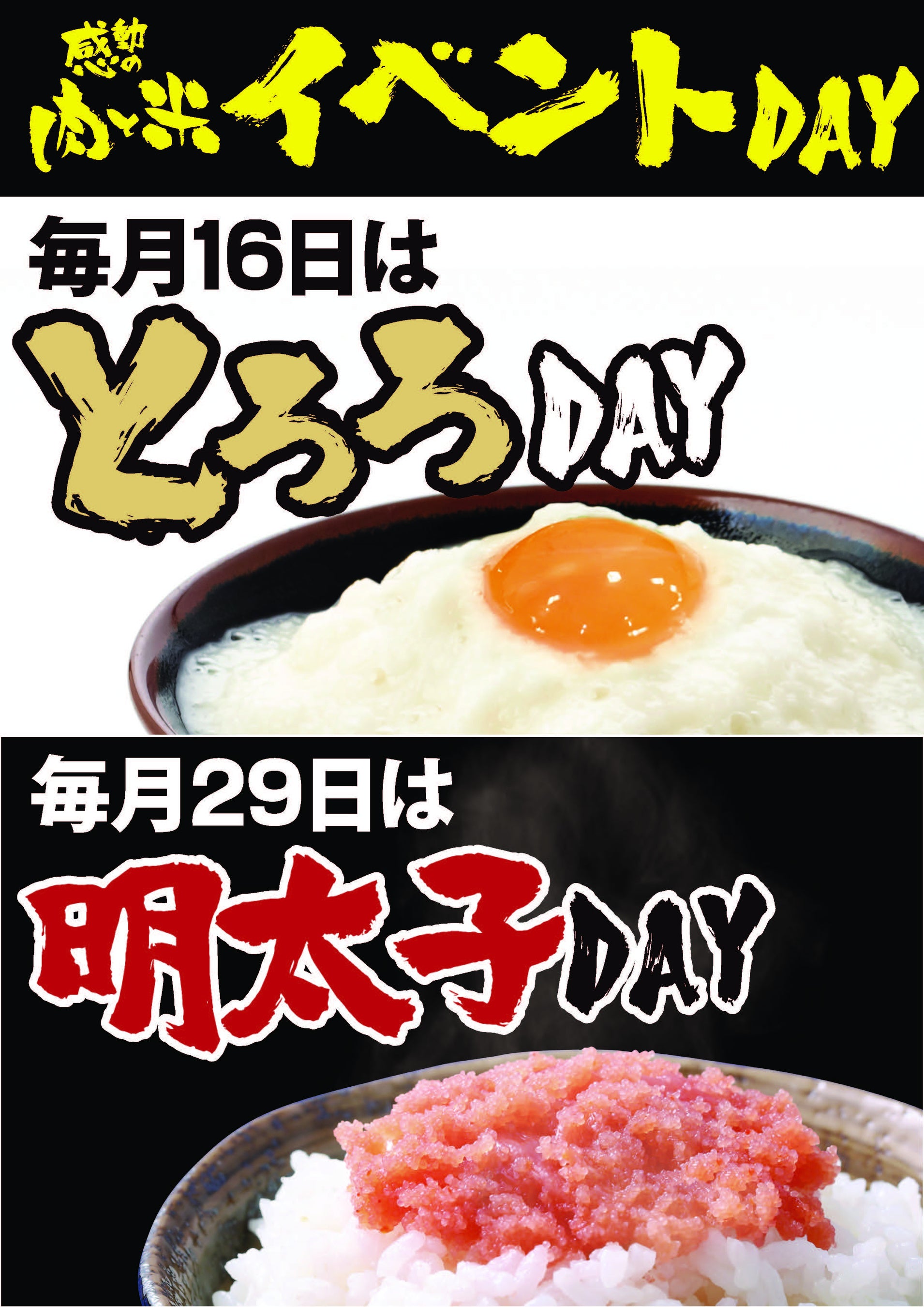 「明太子DAY」×「ハンバーグ祭り」のダブルコンボという超レアな1日となります!