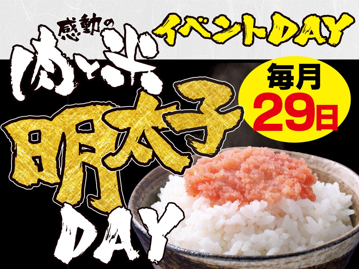 今回は【大人気!毎月29日開催 感動の明太子DAY】
