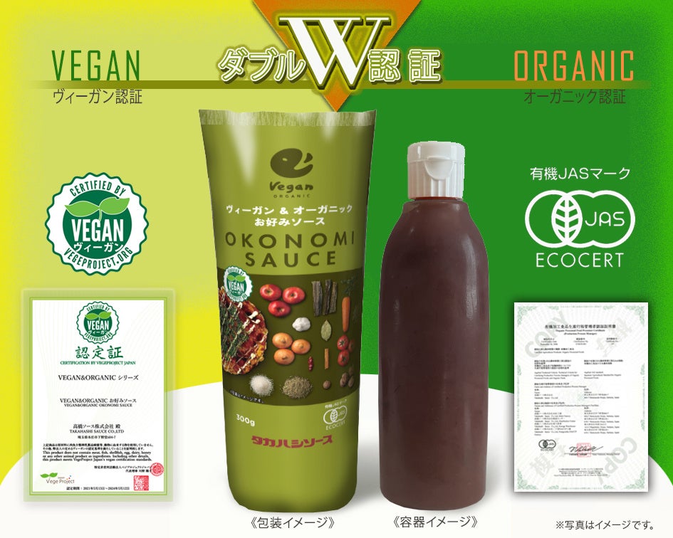 日本初、米国の有機認証機関QAIのもとオーガニックソースとオーガニックトマトケチャップを発売した『高橋ソース』が、今回自信をもって届ける、『ヴィーガンお好みソース』。世界各地から有機素材を中心に、信頼できる素材を集めてつくっています。動物由来の原材料は一切使用しておらず、有機砂糖は、砂糖の国ブラジルの有機粗糖と南米コスタリカのブラウンシュガー、希少性の高い有機りんごはイタリア産、完熟の有機トマトは米国カリフォルニア産、有機醤油は国産、有機醸造酢はドイツ産など、世界各地から厳選して素材を集めています。食品添加物(保存料、着色料、調味料、増粘剤等)不使用で、原材料の選定にこだわるだけでなく、ひとつひとつの生産者の思いの詰まった20種類の素材の特徴をバランスよく凝縮し、濃厚な旨味とコク深いスパイスブレンド。また、素材の良さを生かすために濃厚な甘さと旨味が凝縮したとろみの中に、昆布や椎茸の旨味とスパイスの香味が溶け込んでいるお好みソースです。