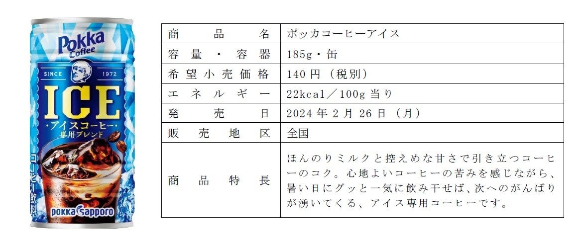 「ポッカコーヒー」は、1972年に喫茶店で飲めるコーヒーの味わいを目指し、190g缶コーヒーのパイオニアとして発売されました。時代とともに味わいも進化しつつ、一昨年に誕生50周年を迎えたロングセラーブランドです。そのポッカコーヒーブランドよりアイスコーヒーのためにブレンドされた「ポッカコーヒーアイス」は夏場のブレイクタイムに最適です。