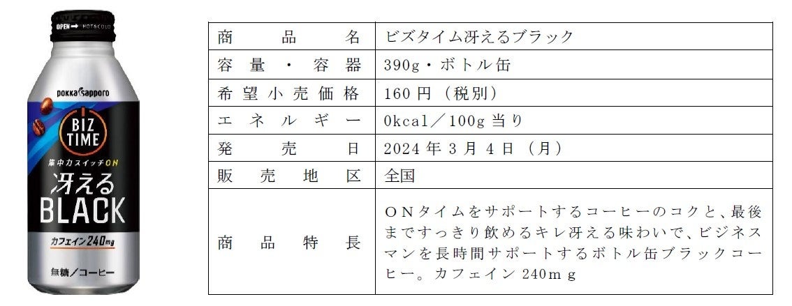 「ビズタイム冴えるブラック」はコーヒーのコクとキレがすっきりとした味わいとカフェイン240mg※入りはそのまま、最後までその味わいが楽しめるようクリアな味わいと後味にこだわりました。「ビズタイムカフェオレ」は、コーヒーのコクを感じられつつ、甘さ控えめな味わいで、少し疲れてくる午後の気分転換にぴったりな商品です。