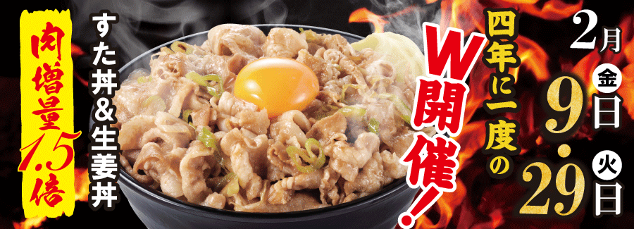 2/29も対象商品の肉が250円分“無料”で50%増量!大盤振る舞いの肉の日はすた丼屋に行くしかない!