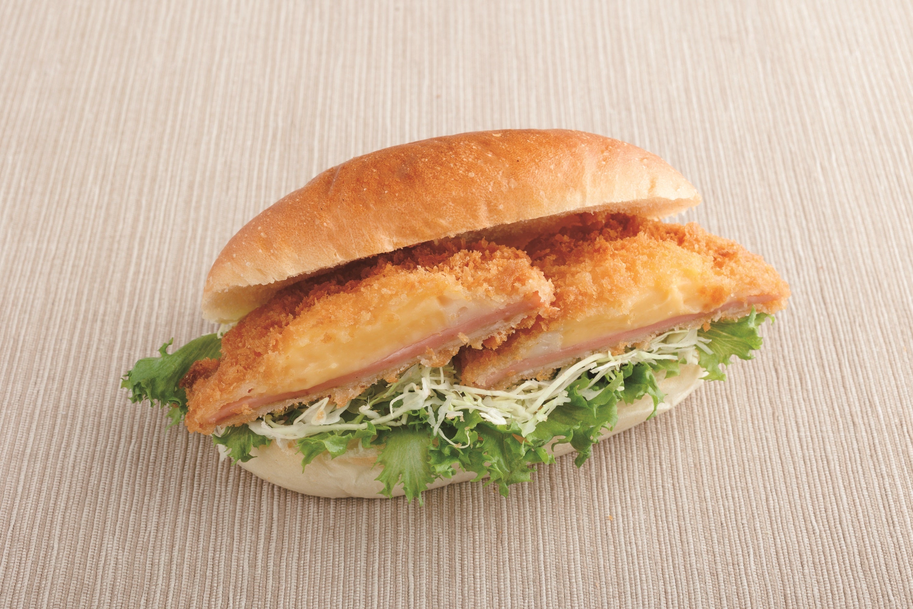 5種類のチーズ入りハムカツをキャベツと一緒にサンド。