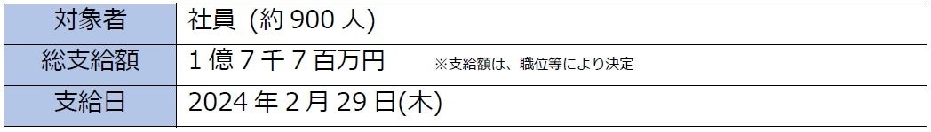 パート・アルバイト従業員へは、定期賞与を2024年1月31日に総額1億2千6百万円支給しております。この定期賞与は毎年1月と7月に支給しており、今後も継続いたします。