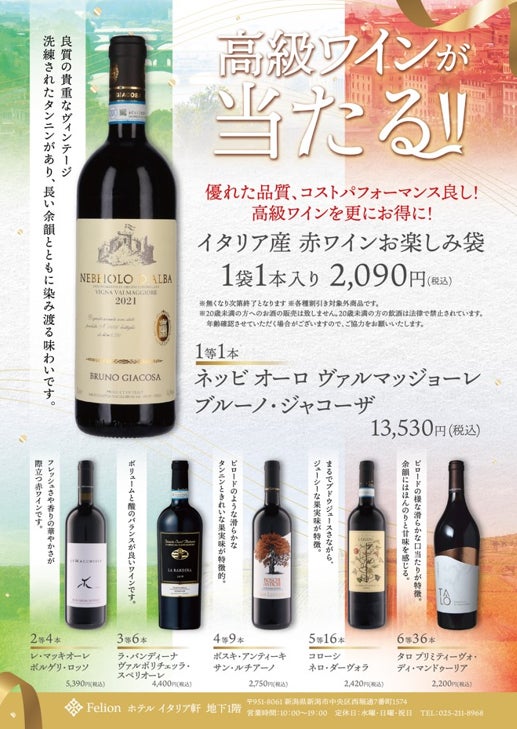 新潟市のホテルイタリア軒の地下に店舗をかまえ、輸入ワインの他、食材や雑貨の販売も行っております。