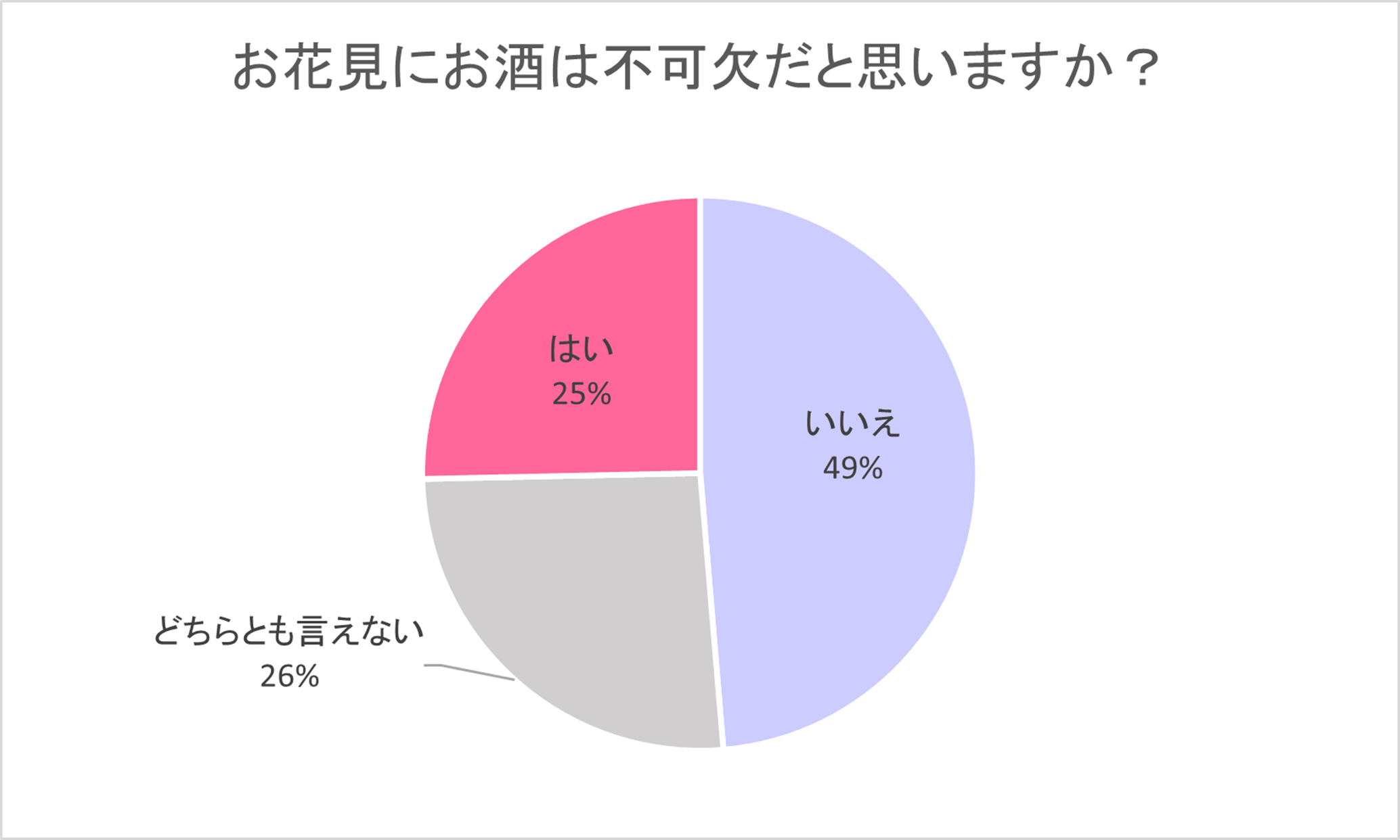 結果として、お花見と料理は切り離せない一方で、お酒はなくてもよい派が多いようです。