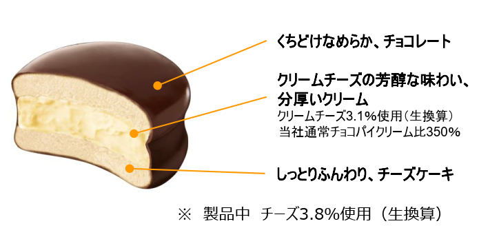 過去のチョコパイシリーズで何度も発売している<ニューヨークチーズケーキ> の人気の味わいを「生 チョコパイ」で表現しました。