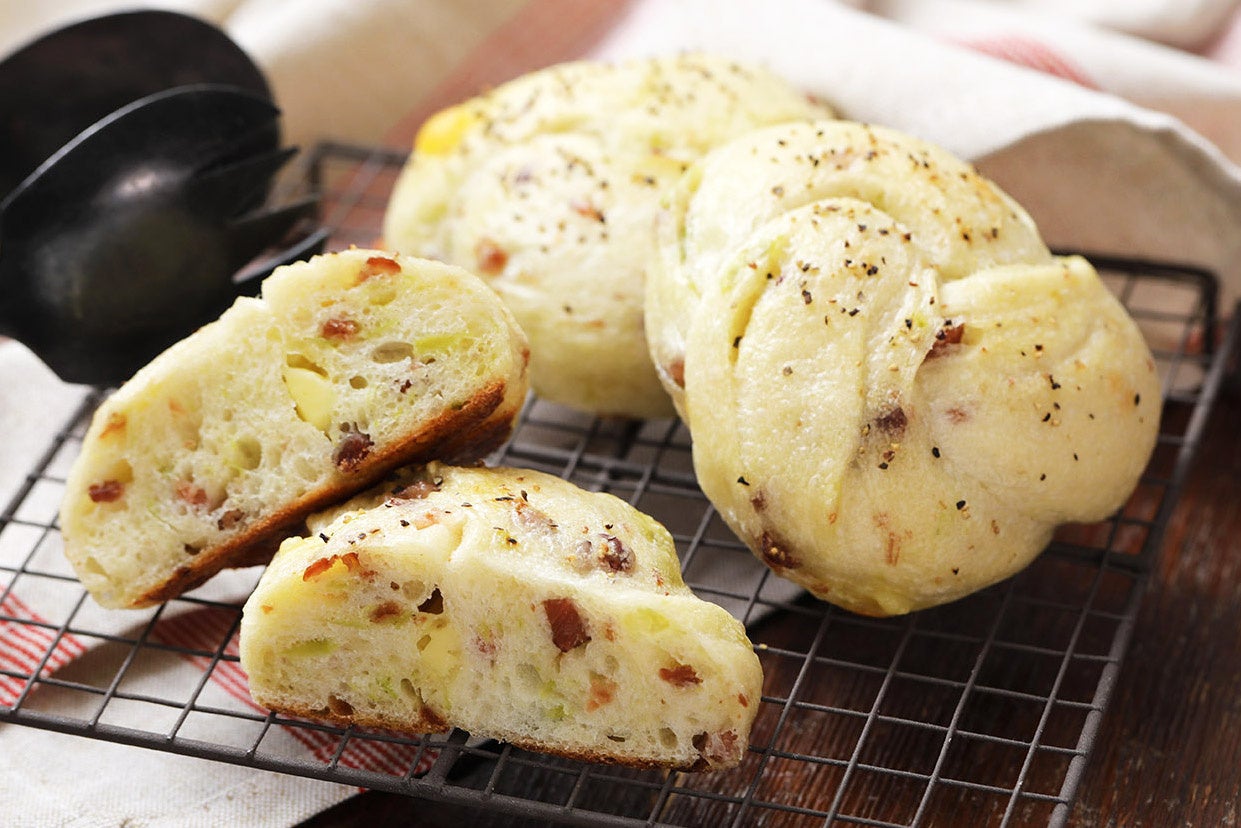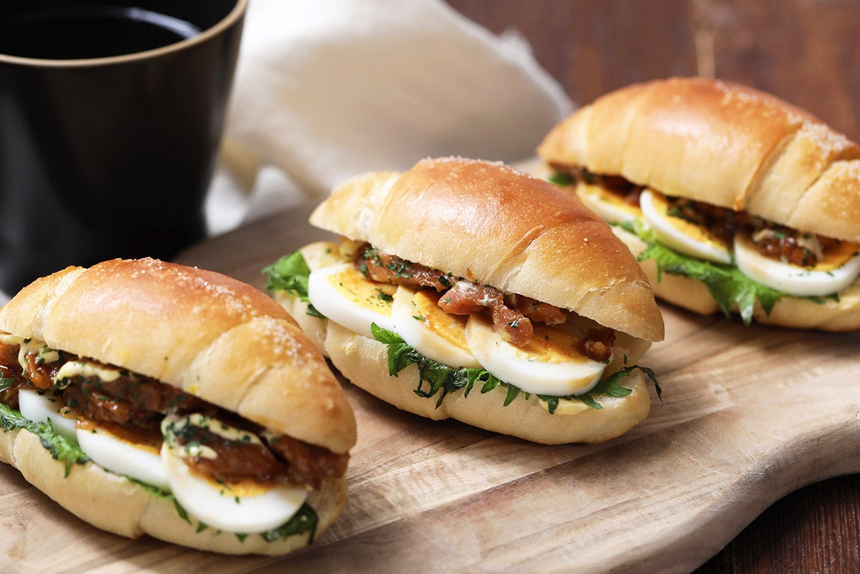こだわり:人気商品『京生塩パン』に大葉、ゆで卵、照り焼きチキン