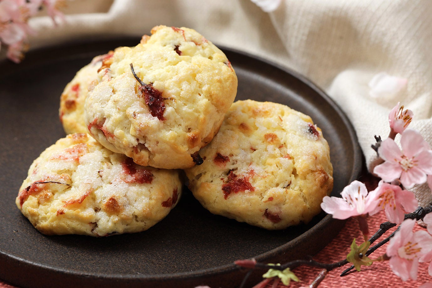 いのスコーン生地に桜の花とホワイトチョコを練り込んで