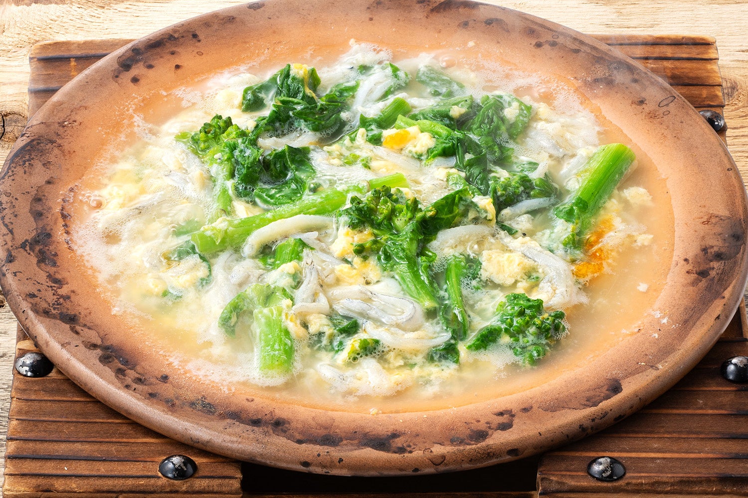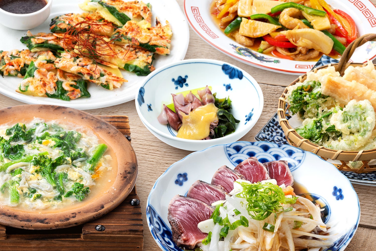 この他、「ほたるいか酢味噌」(650円)、「菜の花としらすの玉子とじ」(500円)、「桜海老チヂミ」(550円)、「釜揚げしらすと若布のサラダ」(580円)、「筍の青椒肉絲」(680円)、「めひかり唐揚げ」(450円)など、全8種を揃えました。