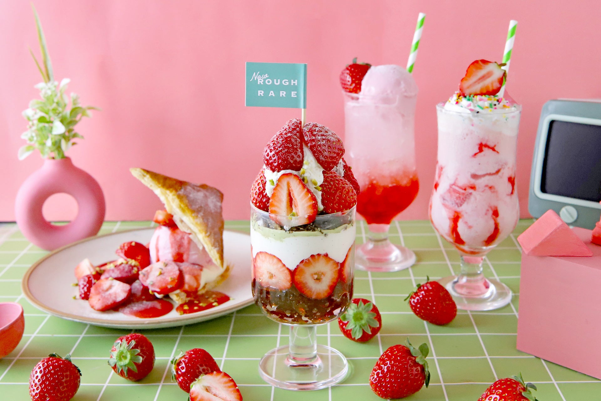 神戸・旧居留地のカフェ「ニューラフレア」春の恒例行事、イチゴのスイーツ&ドリンクが3月5日(火)からスタート。