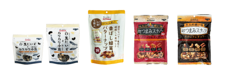 ④フードロス削減に向け、包材変更により賞味期限を延長してリニューアルした『おつまみスナッツ』