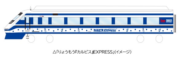 「カルピス」をイメージしたカラーリングの特急りょうもう号、運行初日にお披露目ツアーを実施
