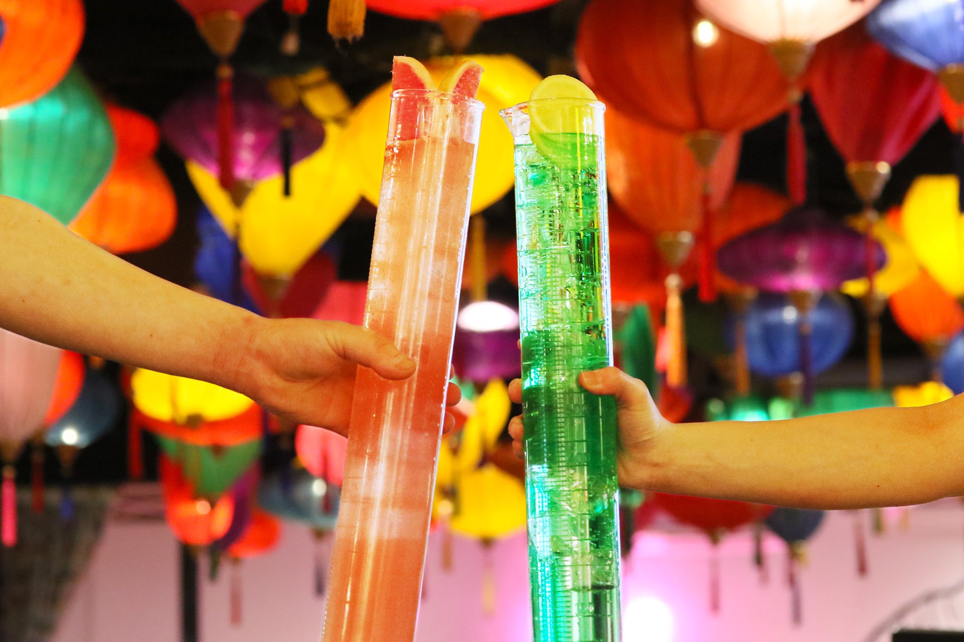 1ℓタワーや大盃など、宴会やお酒の場をを華やかに彩るサナギの人気メニュー、メガドリンク。