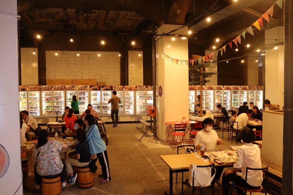 当社が期間限定でオープンする「チン!するレストラン」は、約200種類の冷凍食品やアイスクリームを食べ放題で楽しむことができる新感覚のレストランです。お客様自身が、店内の冷凍庫から商品を選び、レンジアップして食べていただくスタイルです。