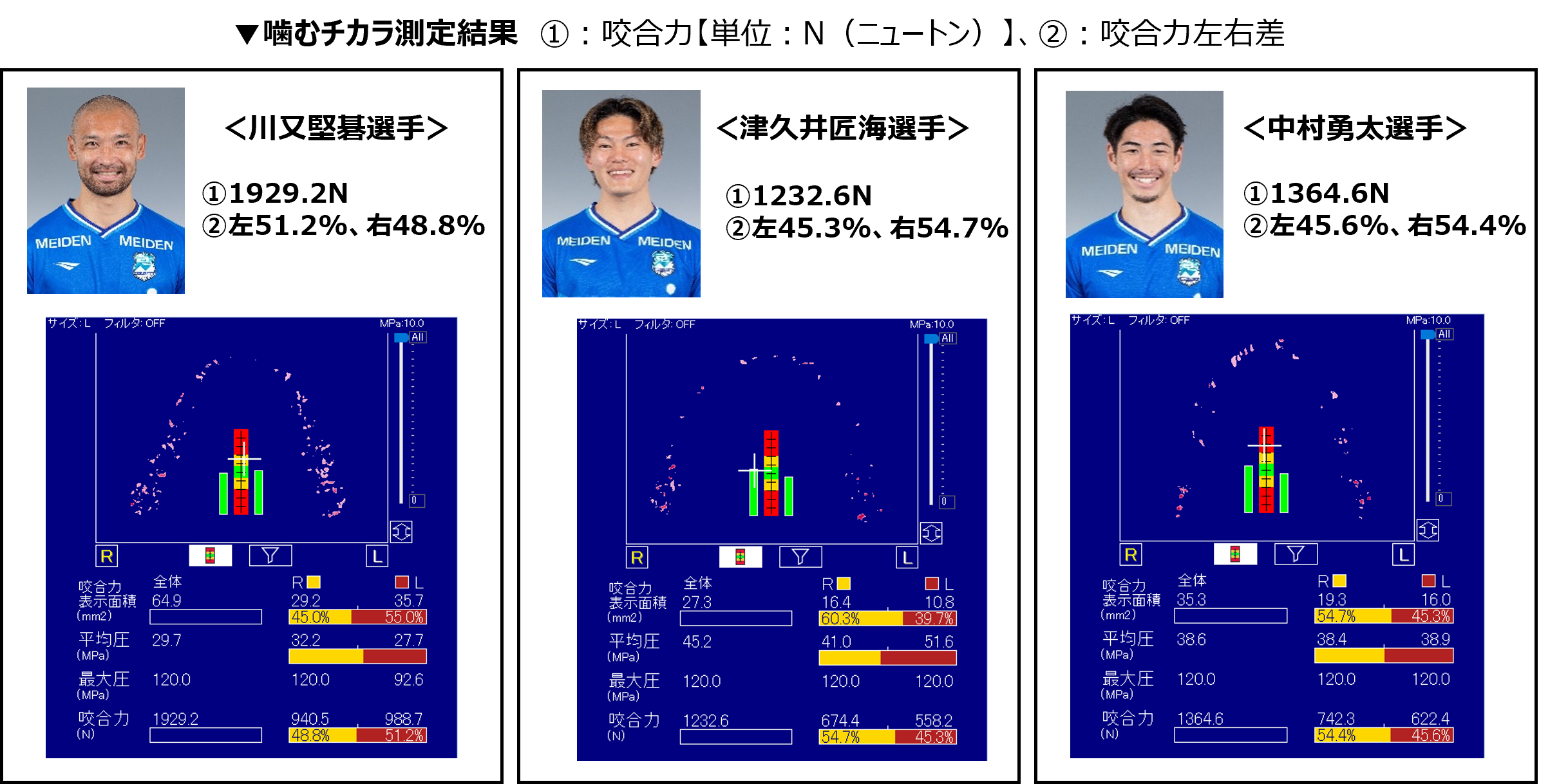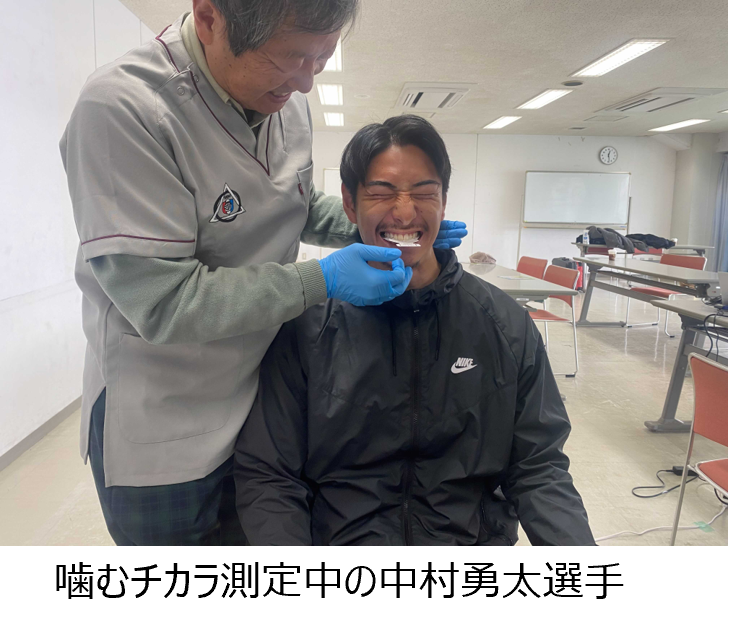 選手の咬合力、左右バランスを見える化!左右バランスの良い選手が続出!