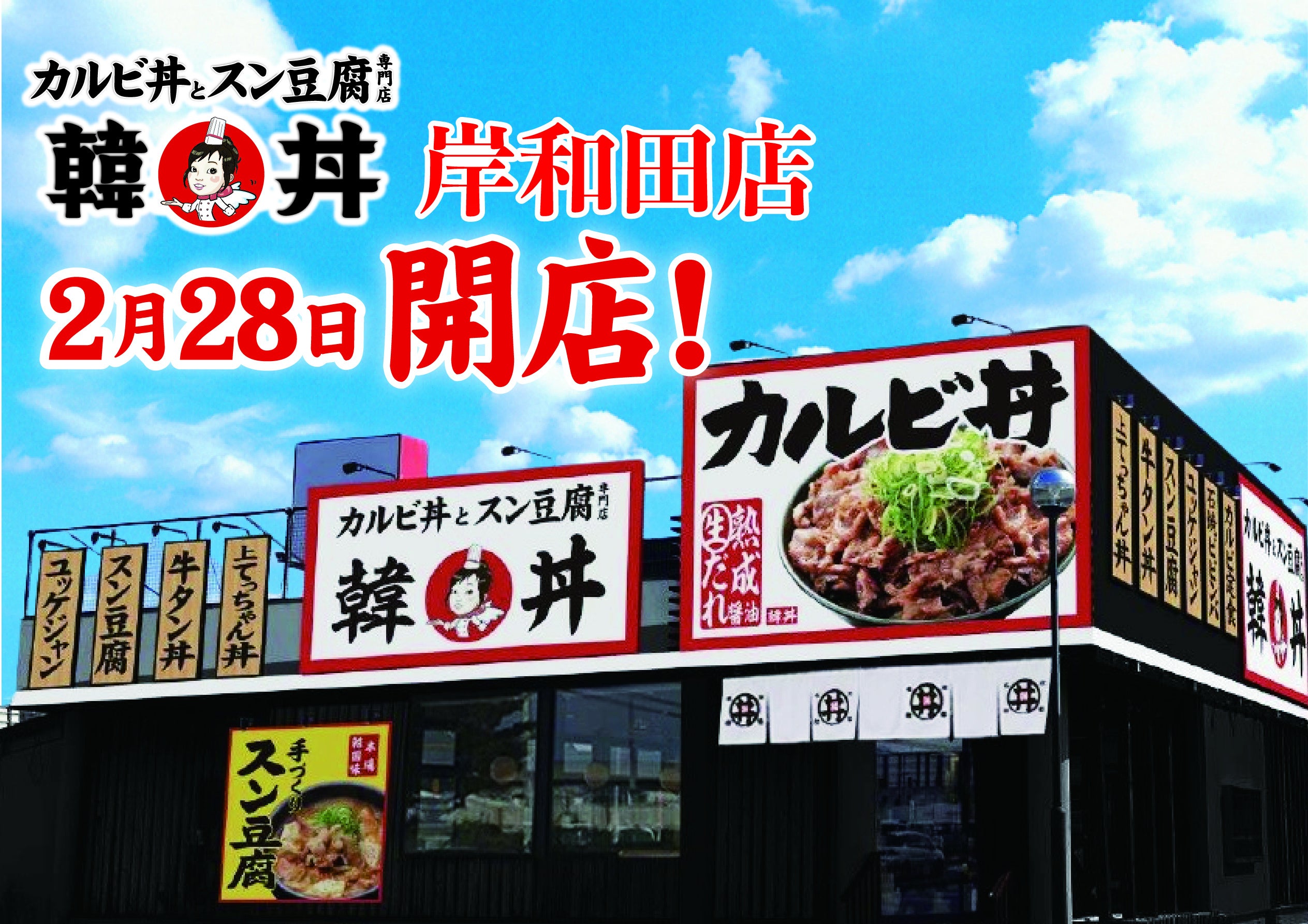 71号店 『カルビ丼とスン豆腐専門店 韓丼 岸和田店』店舗情報